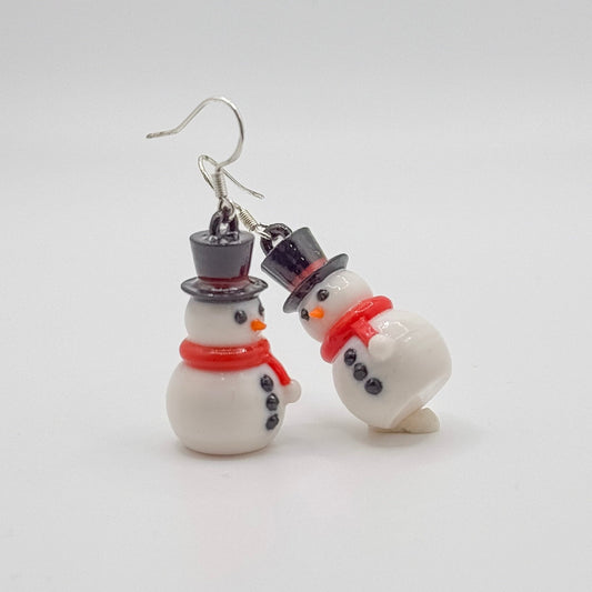 Snowman Earrings with Sterling Silver Hooks